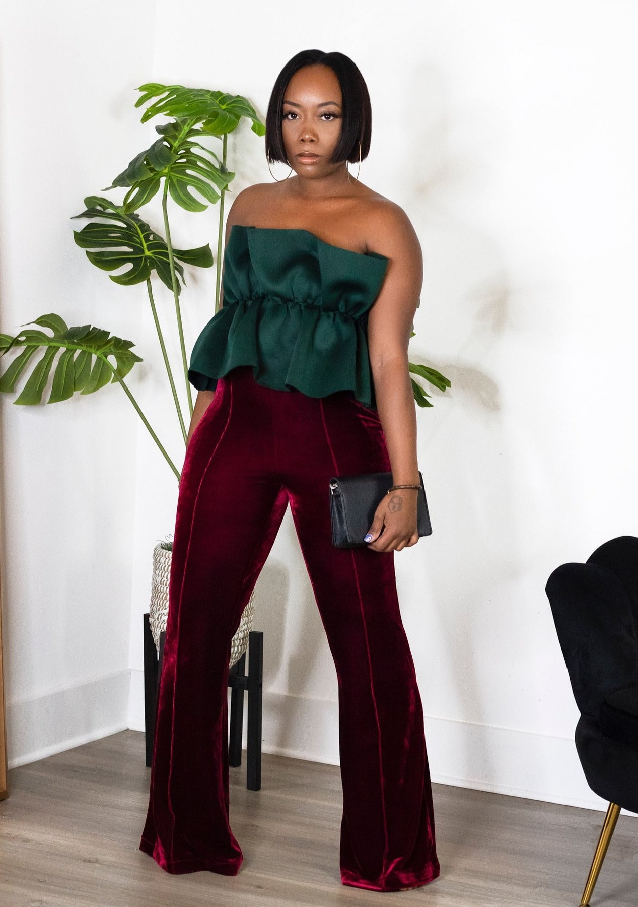 Beautiful Ruffled Gathered Strapless Tube Top, perfect for your Holiday festivities or birthday look! Grab this top along with our Fawn Faux Leather Pants to create this look!