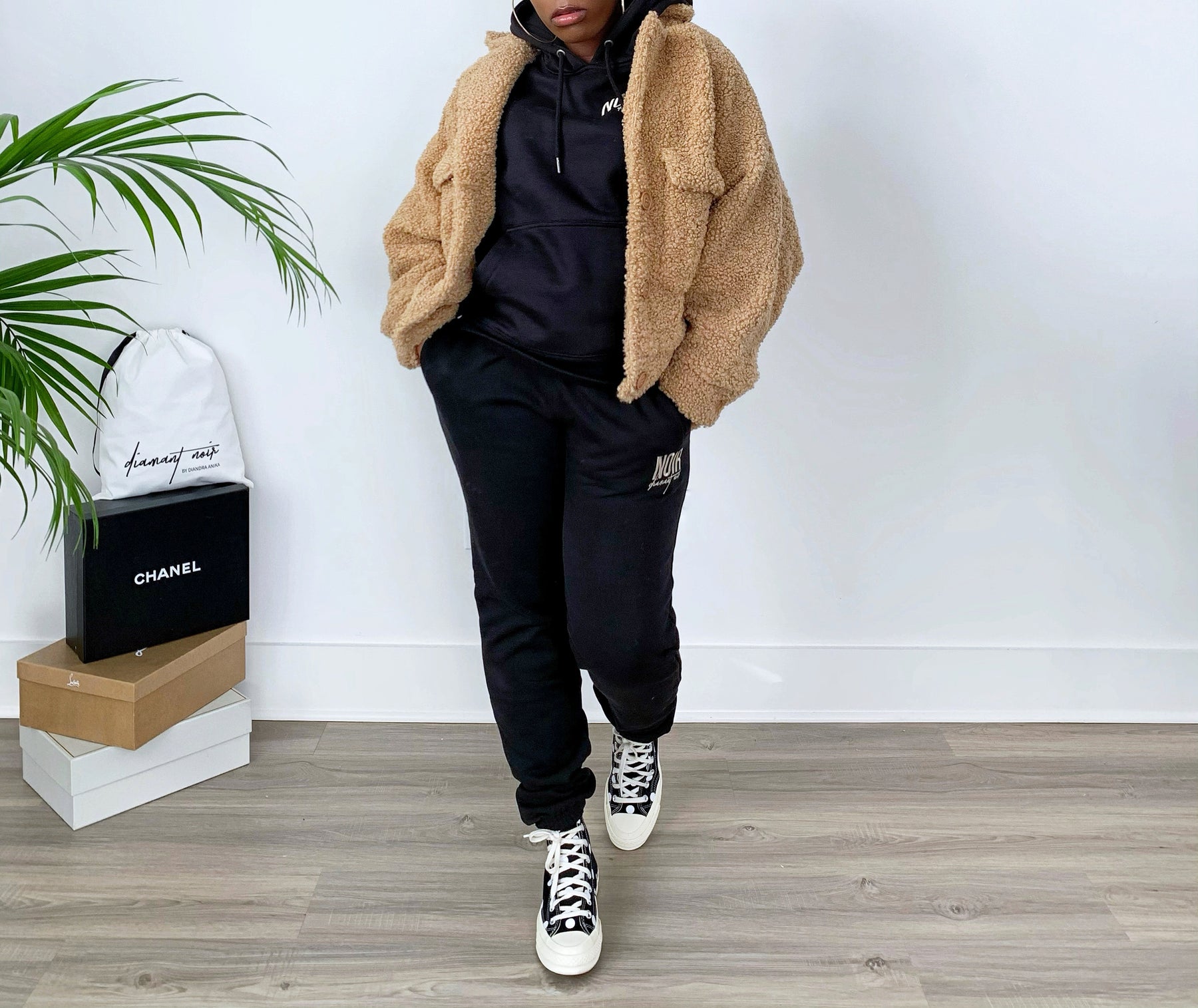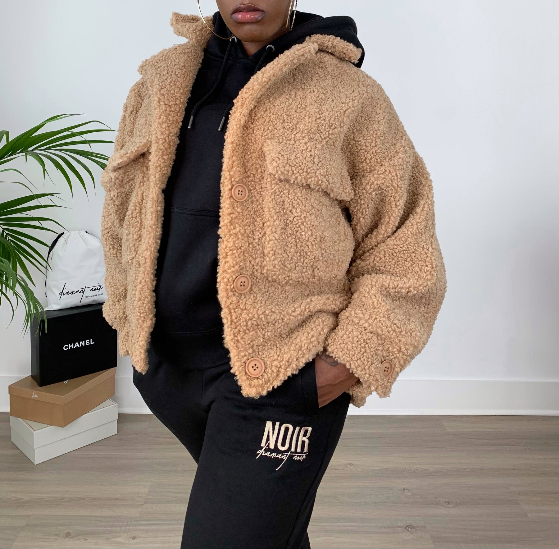 New Luxe Unisex NOIR Organic Cotton Tracksuit with (Tan embroidery) ; Amazing new quality fabric! Very comfortable and durable.