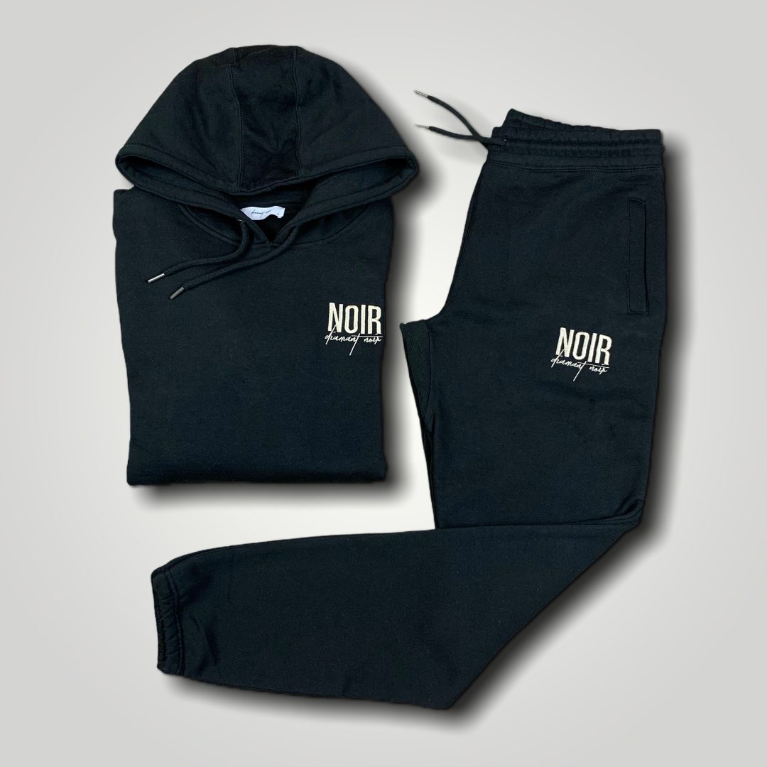 New Luxe Unisex NOIR Organic Cotton Tracksuit with (Tan embroidery) ; Amazing new quality fabric! Very comfortable and durable.