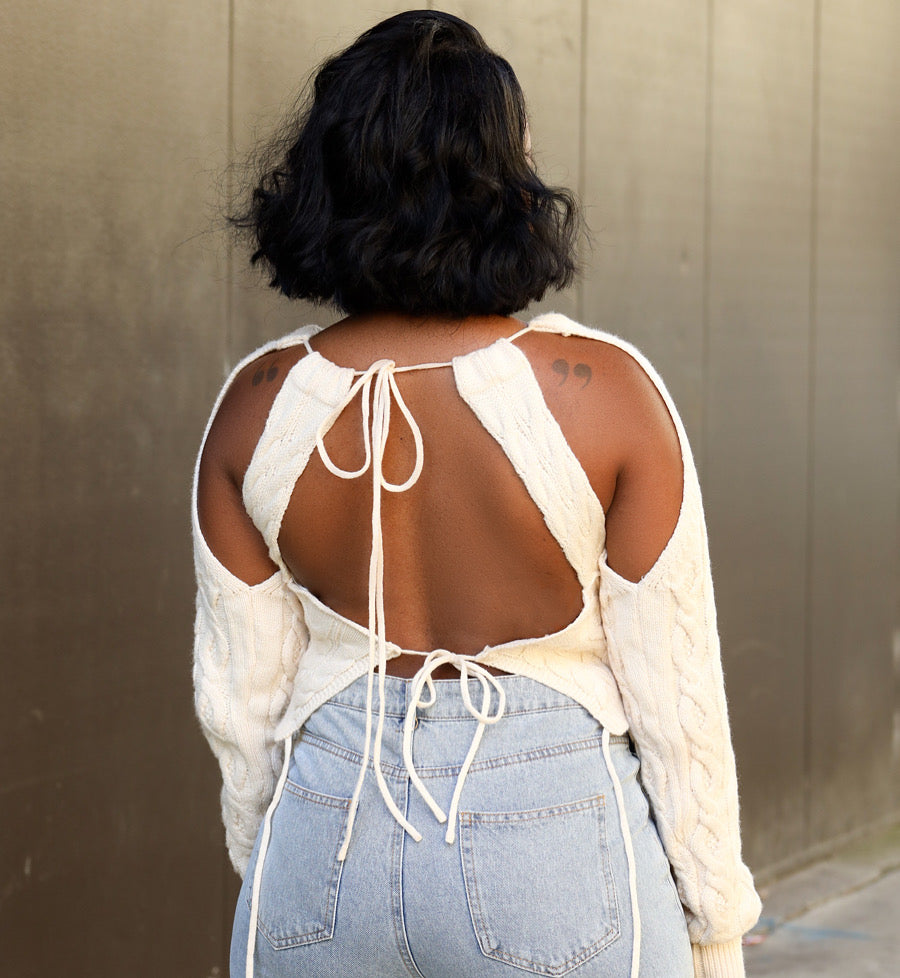 Sweaters don’t have to be boring! Our new cut-out cable knit sweater is a statement piece that can make any simple outfit, pop!