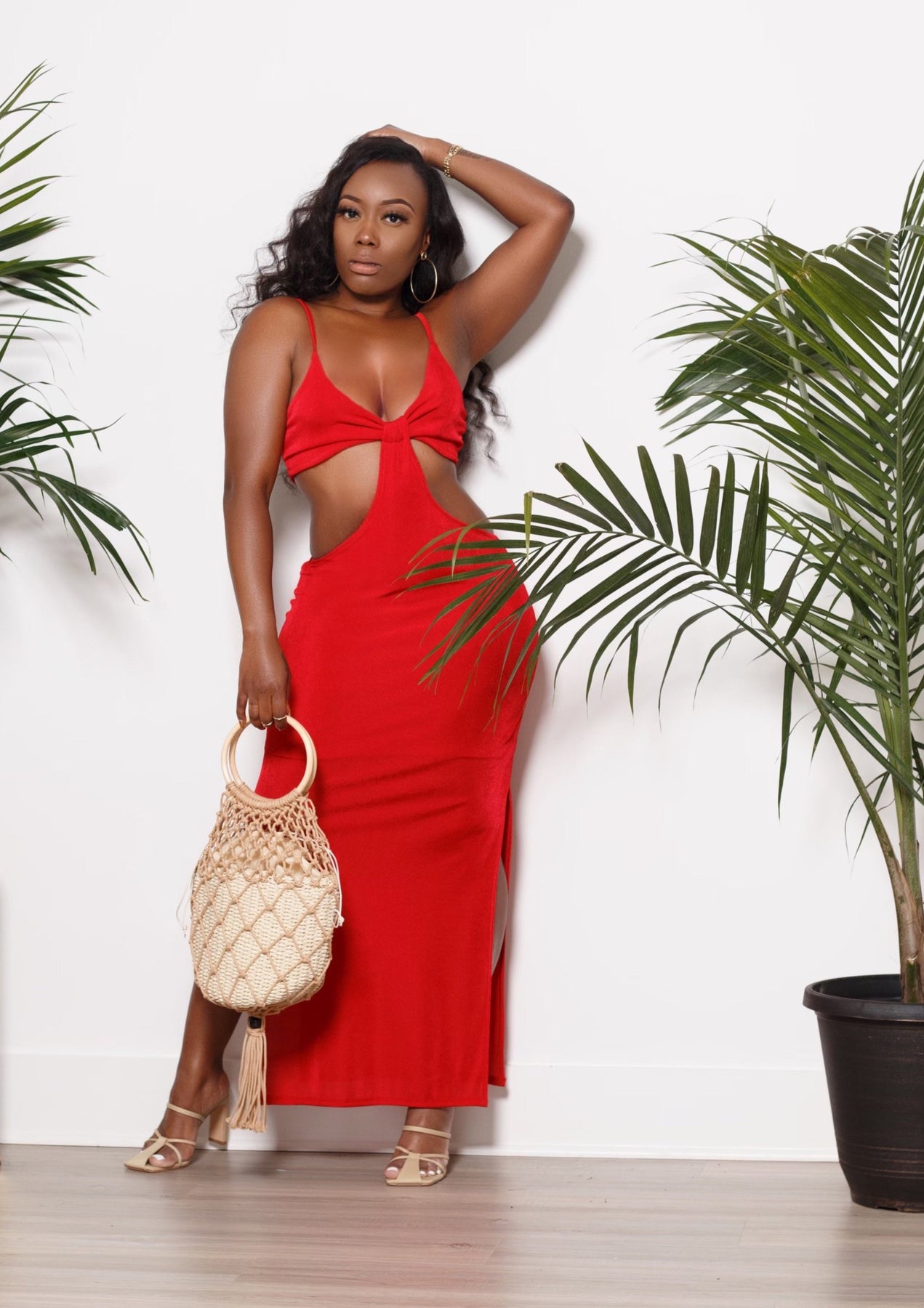 Grab our [Carmen Cut -Out dress] and pair it with our