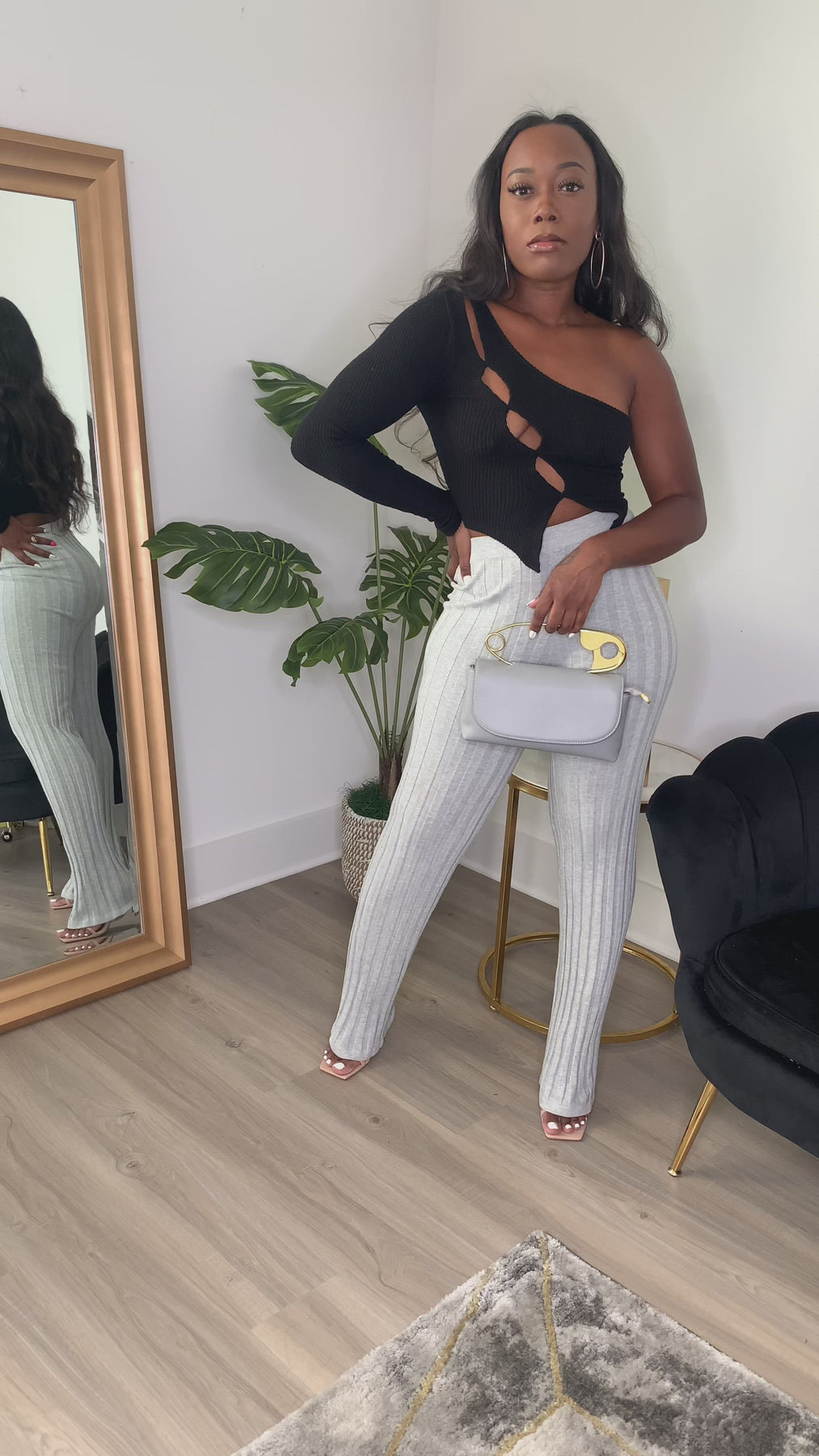 Cut-Out detailed rib crop top perfect for ribbed knit pants or denim jeans. Pair this top with our Paris Pleated Legging Pants.