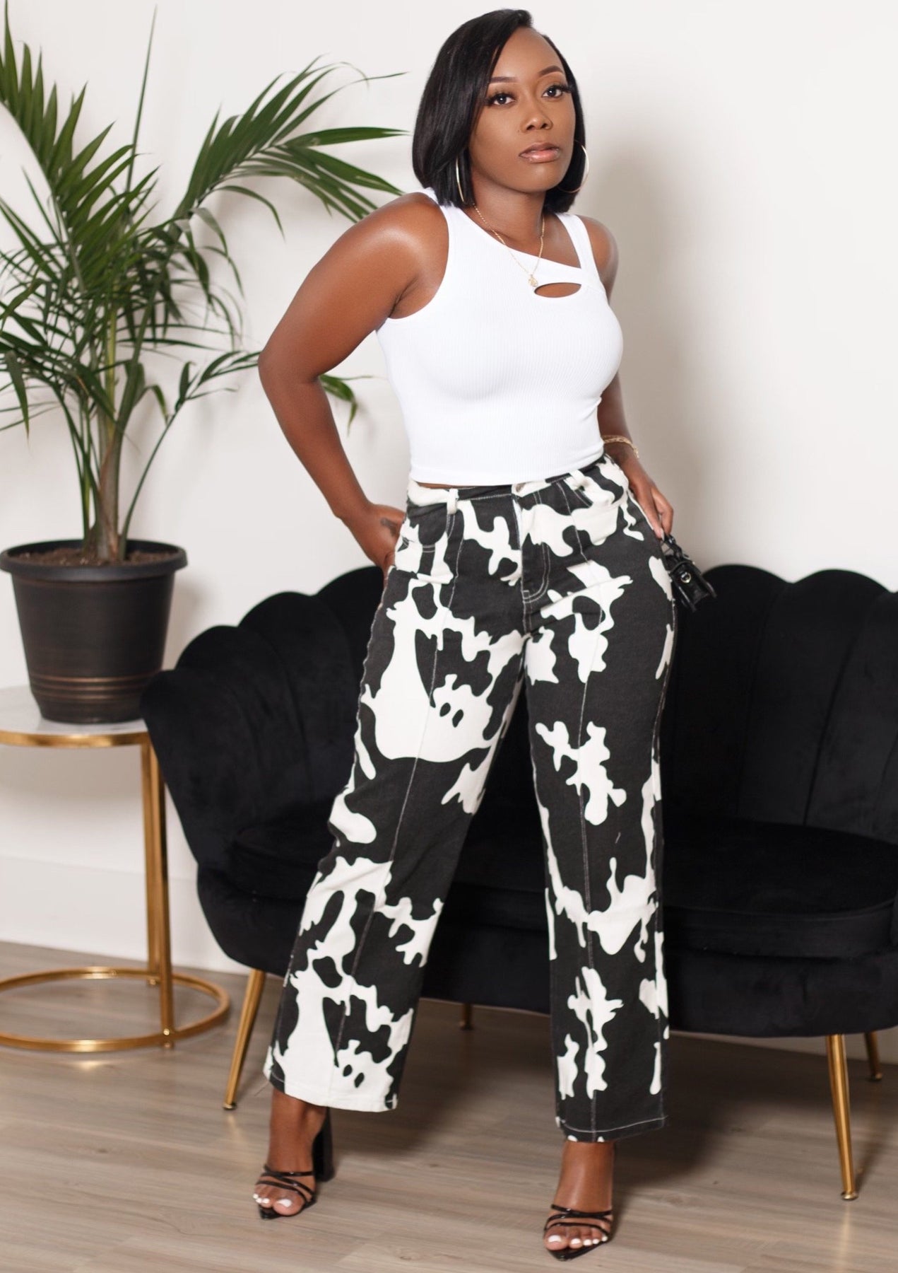 Our Charli Cow Print Pants are show stoppers! It’s the statement piece you can’t pass up and one to turn heads!