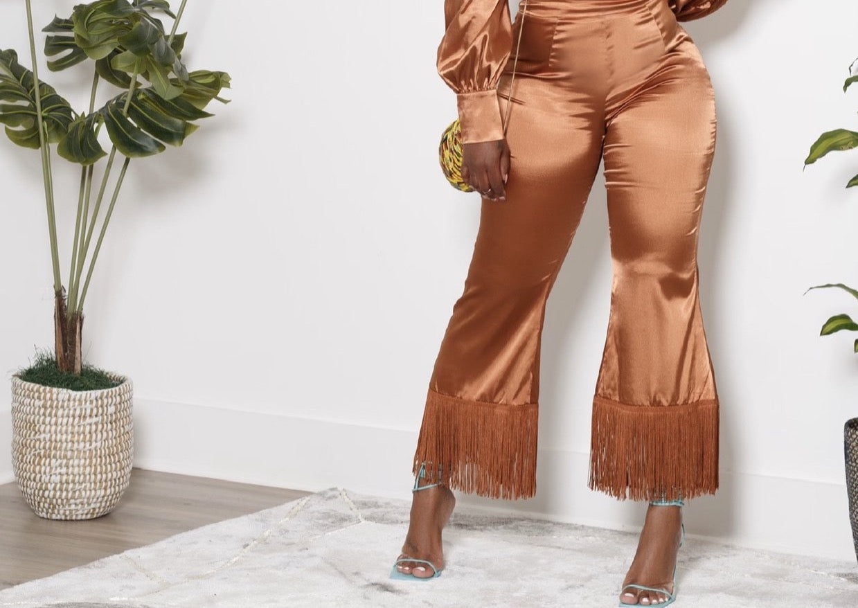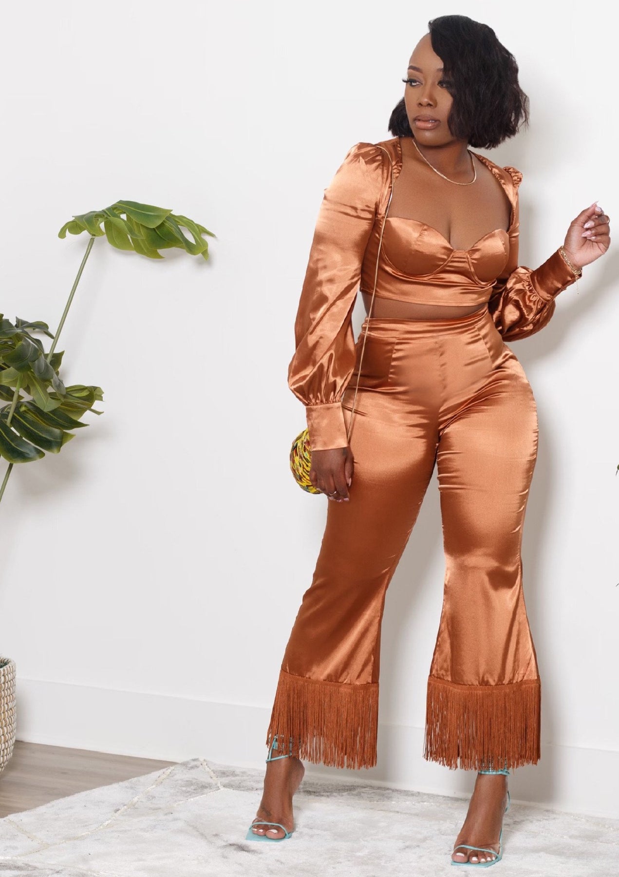 Fara Fringe Satin TOP & BOTTOM SOLD SEPARATELY( Amber)